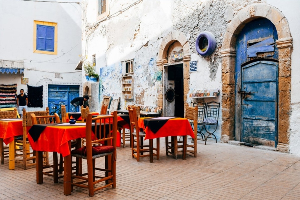 Essaouira, l’ancien Mogador, séduit par sa tranquillité, sa lumière unique et son climat tempéré. À environ 160 km de Marrakech, la route traverse les paysages d’arganiers où l’on observe parfois des chèvres perchées dans les arbres. Sur place, vous pouvez visiter une coopérative féminine d’huile d’argan, puis explorer le port de pêche et sa Skala avant de profiter librement de la médina, des souks, des ateliers de sculpture sur bois de cèdre et de la plage.